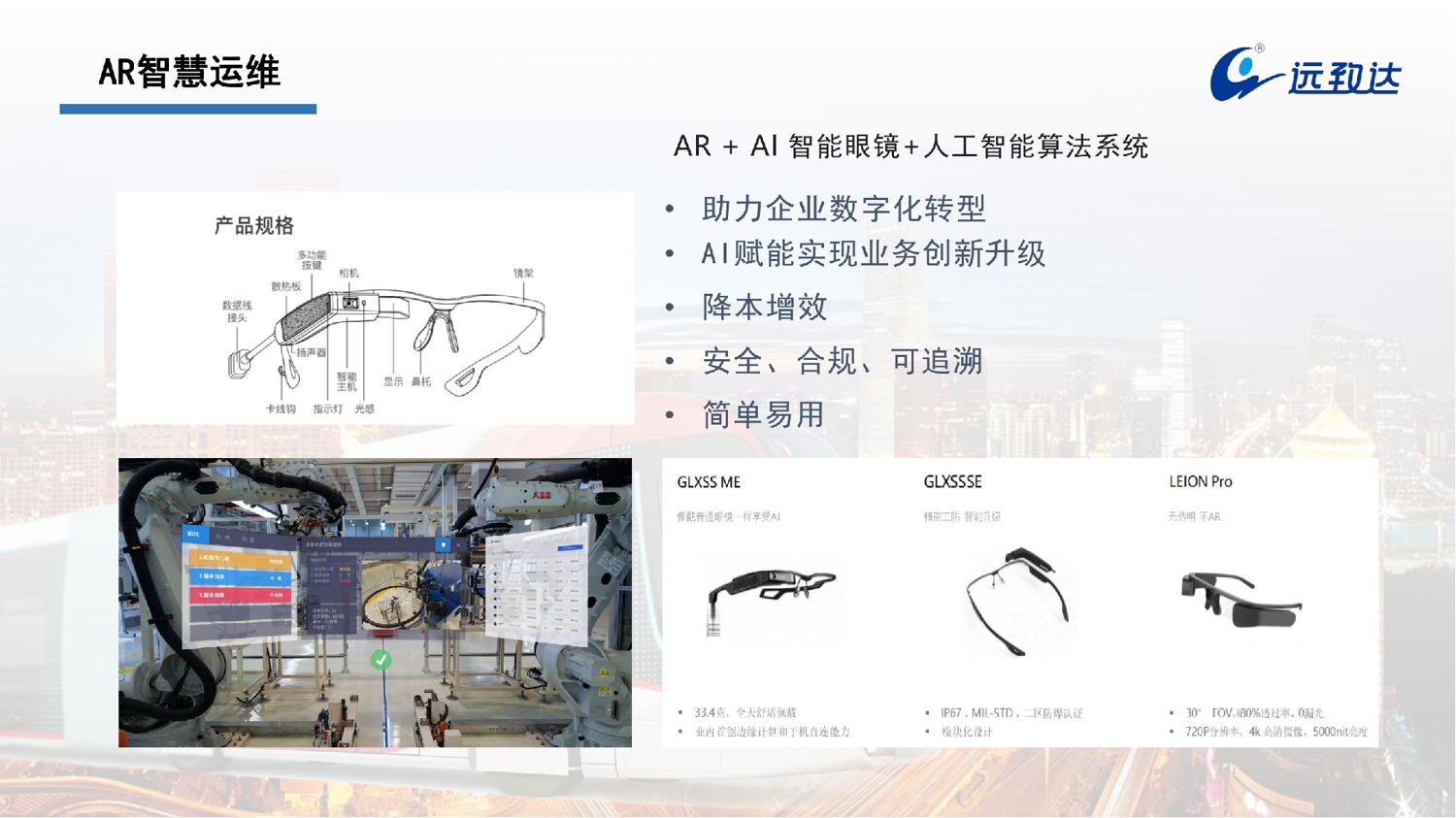 公司主導研發(fā)的人工智能AR眼鏡產(chǎn)品及解決方案廣泛服務于工業(yè)、制造、航空、安防、交通汽車等行業(yè)。