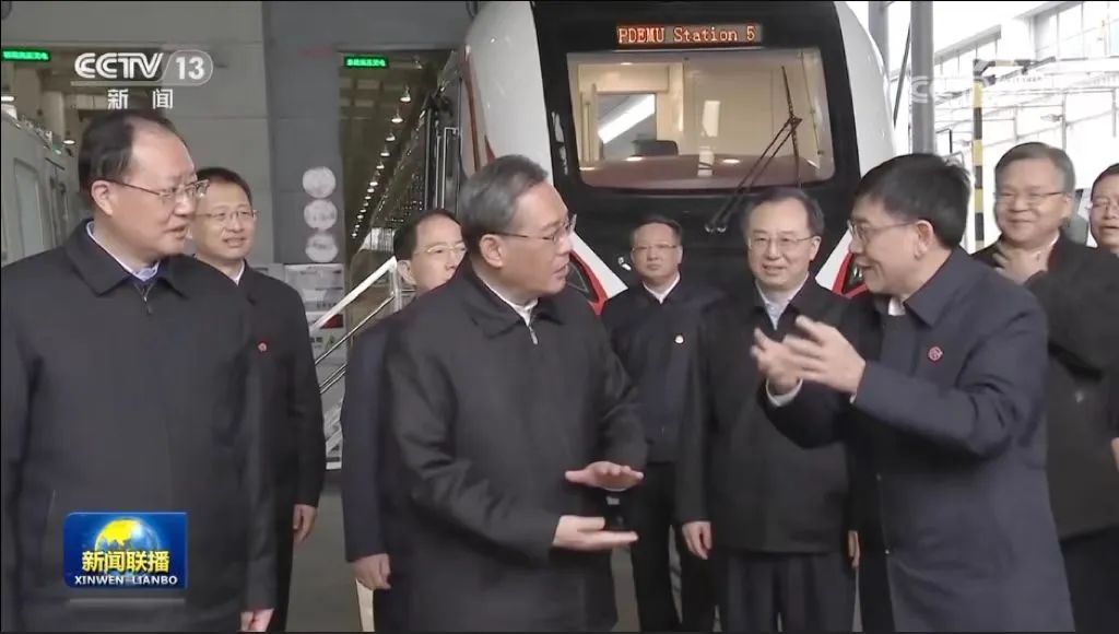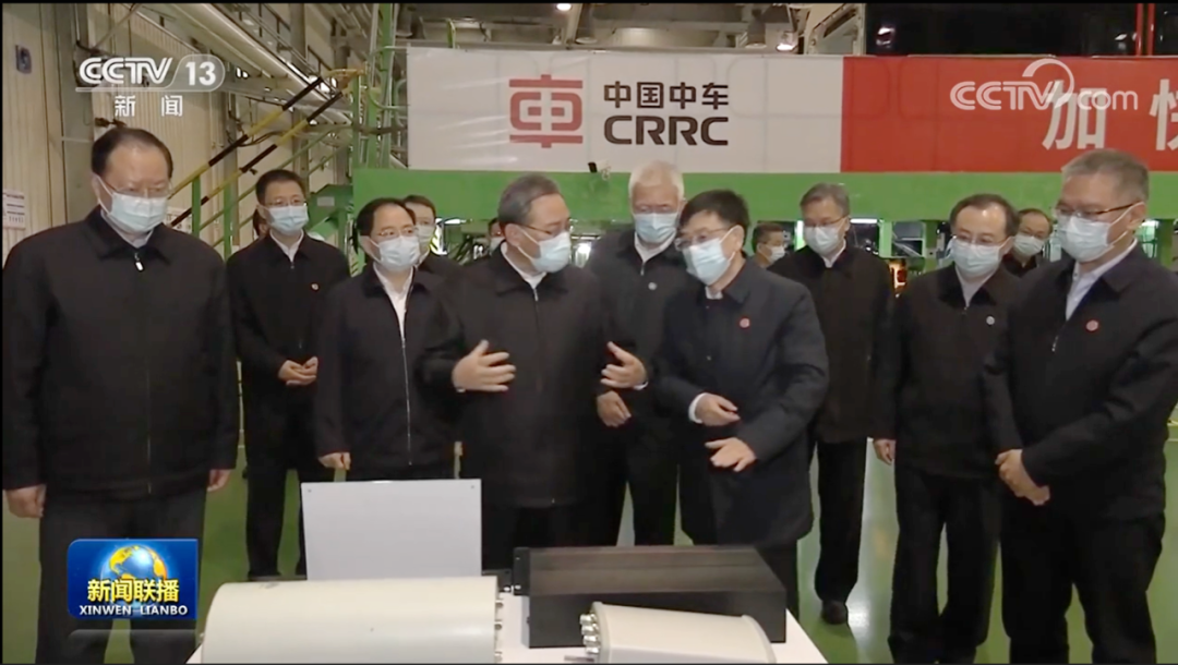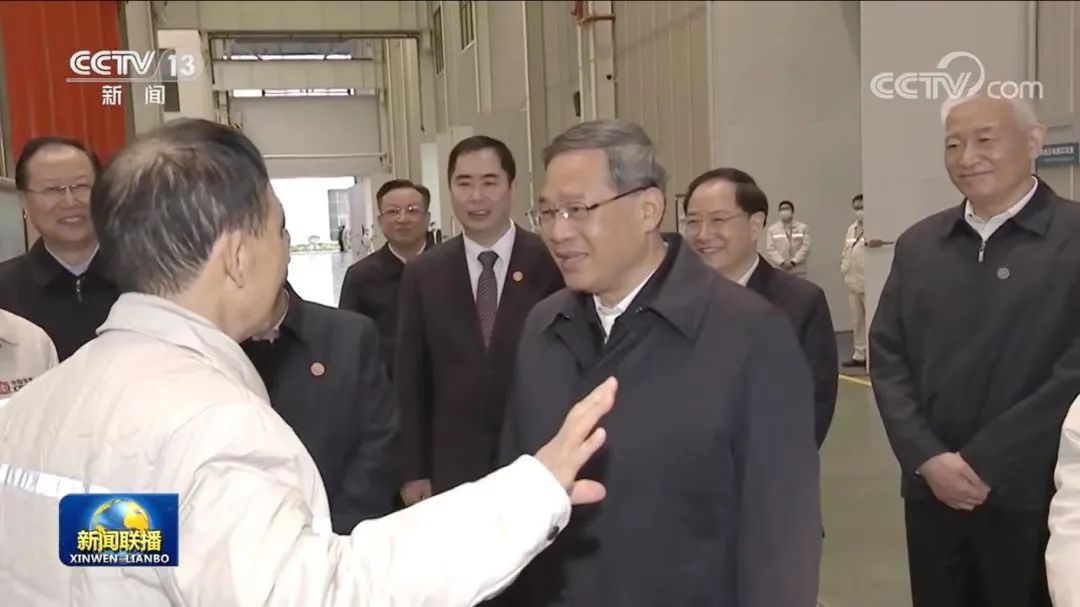 《新聞聯(lián)播》截圖 | 李強(qiáng)總理考察中車(chē)株機(jī),中車(chē)株機(jī)黨委書(shū)記、董事長(zhǎng)傅成駿,總經(jīng)理王巧林匯報(bào)了企業(yè)有關(guān)情況。